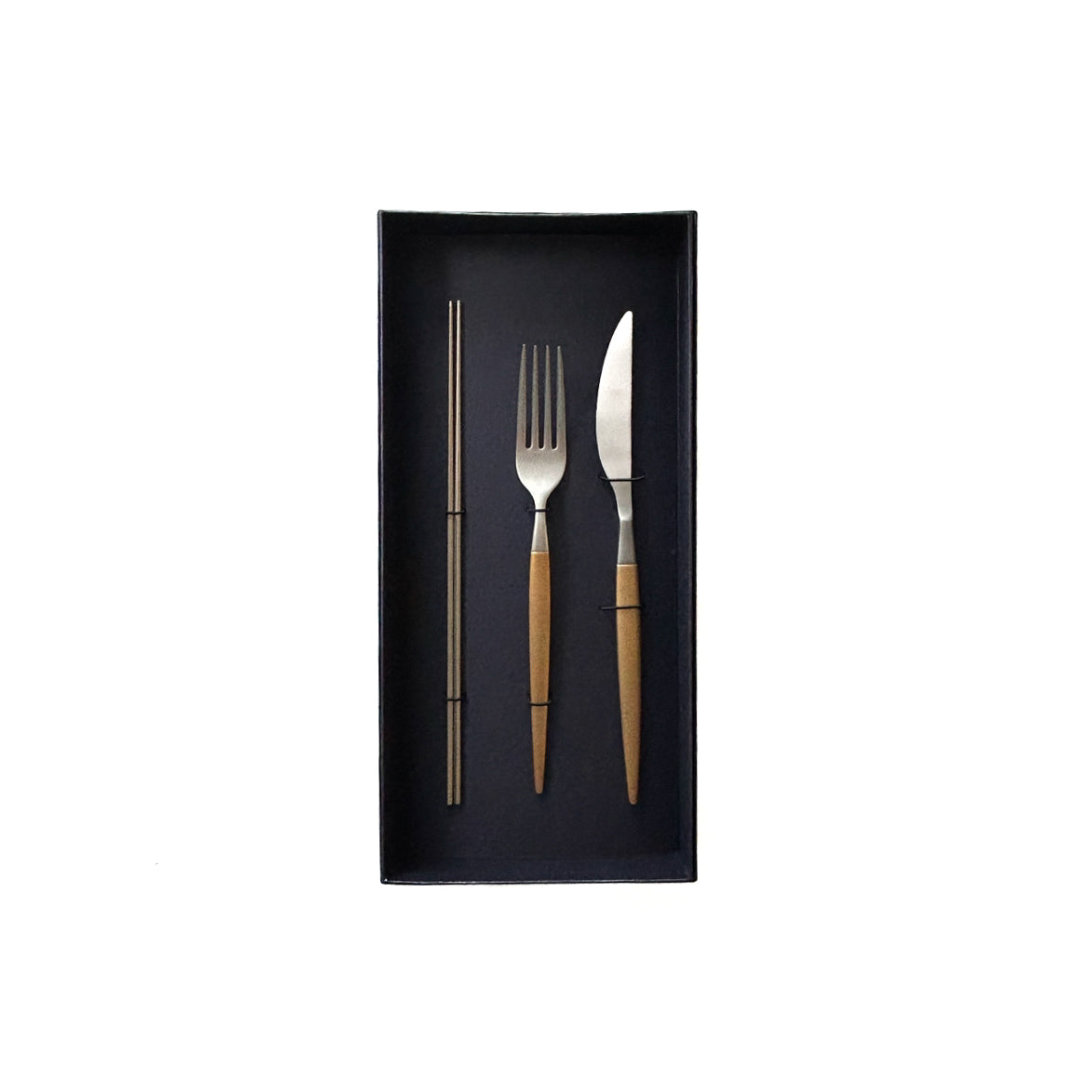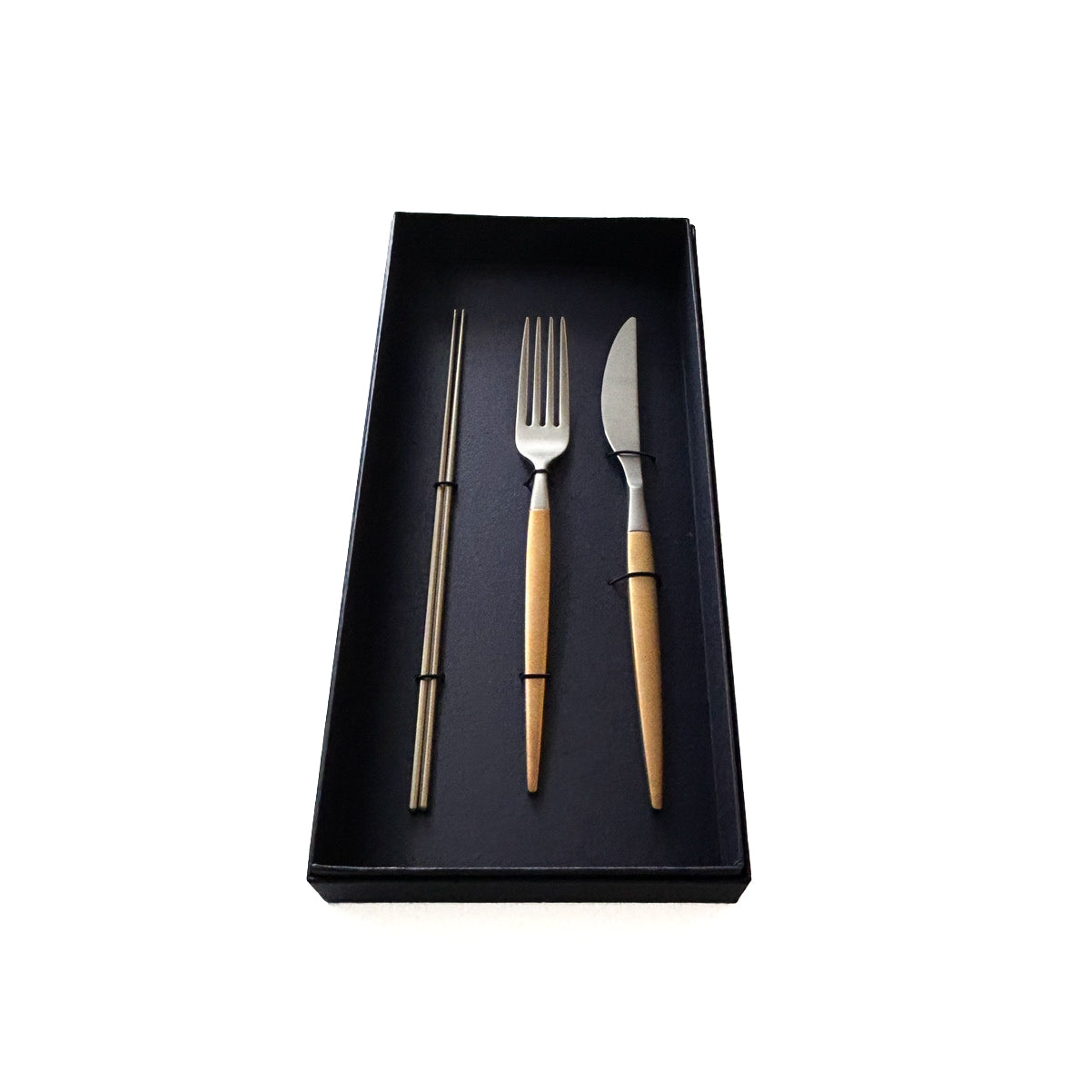 Tsuru 極細ステンレス箸 × Modern ゴールドカトラリーセット|箸とナイフ・フォークのテーブルセット【EC限定】