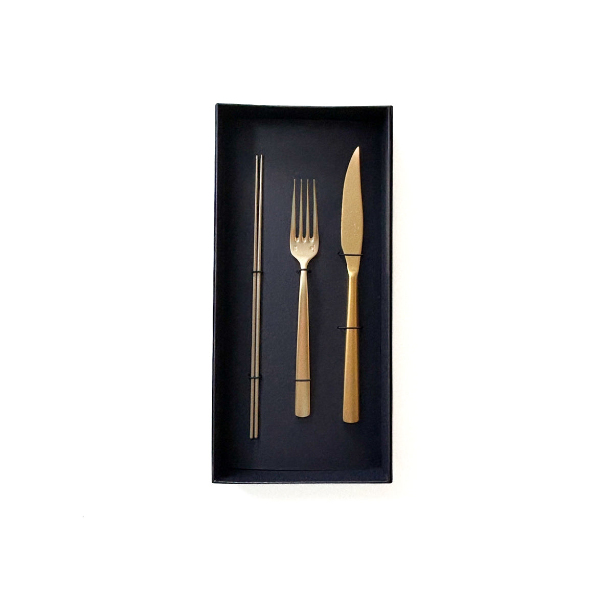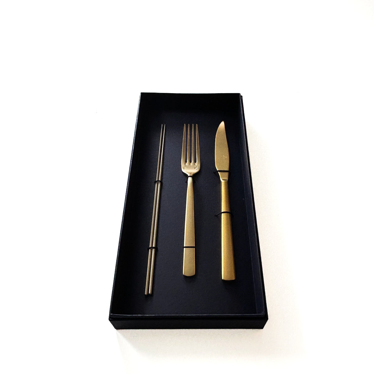 Tsuru 極細ステンレス箸 × SAMURAI ゴールドカトラリーセット|箸とナイフ・フォークのテーブルセット【EC限定】